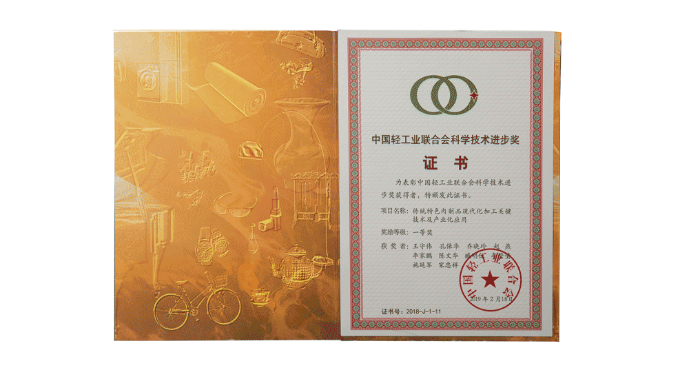 日前,中國輕工業(yè)聯(lián)合會對2018年度在科技發(fā)明及技術創(chuàng)新方面表現(xiàn)突出的企業(yè)及項目進行了表彰,由金字參與的“傳統(tǒng)特色肉制品現(xiàn)代化加工關鍵技術及產(chǎn)業(yè)化應用”項目經(jīng)審定及批準,喜獲中國輕工業(yè)聯(lián)合會科技進步獎一等獎。