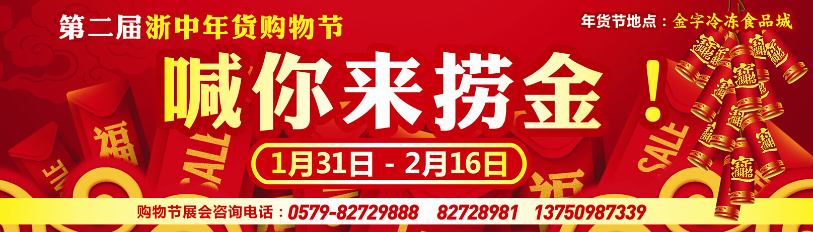 2015年1月31日,第二屆浙中年貨購物節(jié)即將在金字冷凍食品城再次上演年貨盛宴,也許錯過了去年的購物節(jié)狂歡,也許錯過了年末撈金的絕佳時機(jī),而這一次,怎能再次錯過覆蓋金麗衢20多縣市1000萬人口的年貨盛會呢?