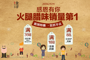 入了12月的江南,空氣中總會(huì)飄散著一股似近似遠(yuǎn)的肉香味,勾人魂魄到直咽口水。窗檐下懸掛的香腸臘肉有一種“年之將近”的即視感,因?yàn)槟蔷褪强痰焦亲永锏哪晡栋?。就算時(shí)代再變化,“小雪腌菜,大雪腌肉”的習(xí)慣依然被懂得生活的人代代傳承著。2014年的金字天貓旗艦店雙12來(lái)了,為您準(zhǔn)備的好臘味上新,十二道臘味年前抄底價(jià)。春運(yùn)車票已經(jīng)可以買了,臘味也同樣:回家過(guò)春節(jié),你準(zhǔn)備好了沒(méi)有?