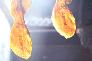 沒有優(yōu)質(zhì)的豬種,就沒有優(yōu)質(zhì)的火腿,這是火腿界質(zhì)樸的真理。許多人都把火腿想當(dāng)然地理解為腌臘肉,事實(shí)上,火腿屬于發(fā)酵肉,與葡萄酒、奶酪同屬于發(fā)酵類食品。制作火腿過程中,除了腌制清洗風(fēng)干程序之外,最重要的過程是發(fā)酵熟化。 從火腿生產(chǎn)到最終完成,至少需要一年的時(shí)間,如果想得到一支高水準(zhǔn)的火腿,則需要三年的“陳釀”。