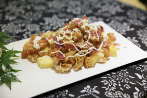 “金字百變火腿”創(chuàng)意秀,遍尋民間家?;鹜炔说膭?chuàng)意做法。征集消息發(fā)出至今,已有不少市民愿意一秀才藝。?在這個過程中,有專業(yè)大廚,有退休老人,有美女廚娘,也有這個城市里最普普通通的上班族。不可否認,大廚、專業(yè)人士們的擺盤、用料更為講究,但其實,很多時候,帶給我們驚喜的卻反倒是那些看上去普普通通,甚至連名字都是現(xiàn)取的家常菜,夠自然,夠純粹,甚至,還經(jīng)常能從中發(fā)現(xiàn)一些小驚喜?;蛟S,也就是做菜人的這些小心思,成就了我們這些品嘗者味蕾的驚喜,就像這次來應(yīng)征的這桌火腿菜,看著普通,吃到的人,微笑卻無一不由心綻